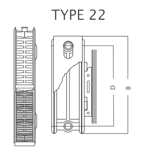 Модель Quattro K22 - стальной радиатор 22 типа с боковым подключением, высотой от 300 до 900 мм и длиной от 400 до 3000 мм.